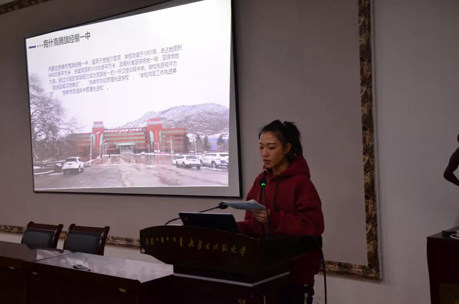 实习学校包括了鄂尔多斯杭锦旗龙子沁小学、二连浩特蒙古族中学、呼市东风路小学、赤峰市克什克腾旗小学、呼市34中学、鄂尔多斯杭锦旗巴拉贡学校、师大附中、呼铁一中,学生们对在实习生活中所见所闻所感做了真挚的发言,通过这几个月的实习,可以感受到同学们有了较大的进步,也认识到自己需要改进的地方。