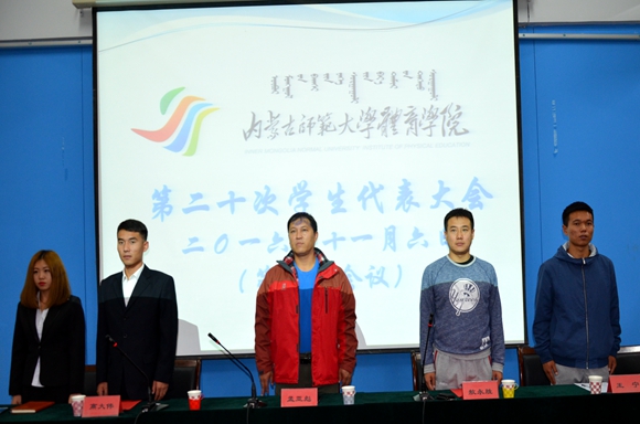 本网讯(文/图 体育学院学生会 姚辉)11月6日晚七点,体育学院第二十次学生代表大会在体育馆报告厅顺利举行。我院学生办公室主任孟亚彪、团总支书记敖永胜、校学生会主席高大伟、王聪聪、我院学生会主席王宁及各班学生代表、学生会成员参加了本次会议。