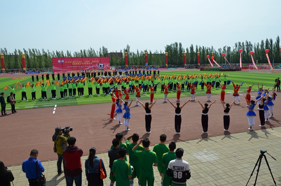 本网讯(文/图 体育学院学生会 姚辉)今天上午,2016年内蒙古自治区“主席杯”校园足球四级联赛大学本科组比赛开幕式在我校盛乐校区举行,我院330名学生经过为期12天的刻苦排练,为在场的领导、老师以及同学们带来了一场视觉盛宴。