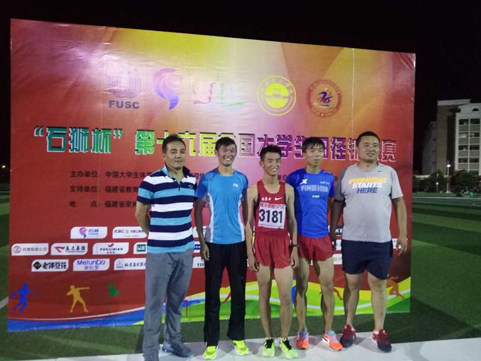 本次比赛我校共派出6名运动员参加本届赛事,获男子团体全国第17名。在男子甲B组5000米决赛中,我校2013级运动训练专业学生包毕力格以14分40秒的成绩获得第三名,2014级运动训练专业学生李春辉以14分51秒的成绩获得第四名,2014级运动训练专业学生刘洪亮以14分53秒的成绩获得第五名;男子甲B组10000米决赛中,我校2013级运动训练专业学生包毕力格以31分54秒的成绩获得第四名,2014级运动训练专业学生李春辉以32分35秒的成绩获得第七名;2013级运动训练专业学生周润泽以47.89米得成绩获男子甲B组铁饼第五名;2012级运动训练专业学生吕光兆以63.29米获男子甲A组标枪第四名。2014级运动训练专业学生刘鑫琪,铁饼、铅球两个项目均进入全国前12名。