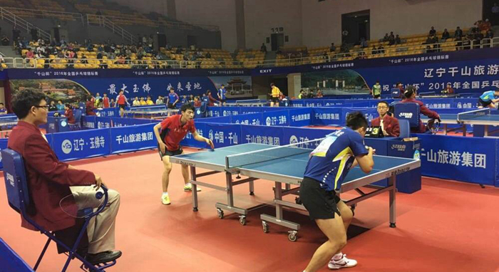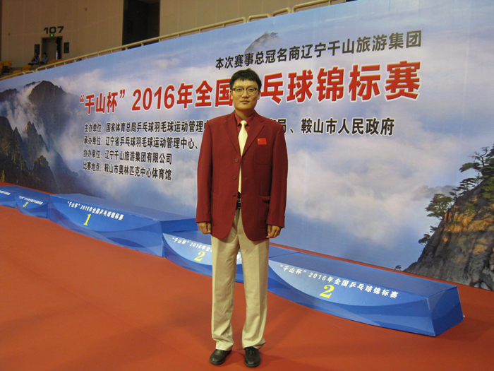 本网讯 2016年“千山杯”全国乒乓球锦标赛9月28日在辽宁省鞍山市奥林匹克中心体育馆落幕。本届全国乒乓球锦标赛是继里约奥运会后乒乓球项目第一个重大国内赛事,来自全国各省、自治区、直辖市、解放军、行业体协等30支参赛队的306名顶级乒乓球运动员参加比赛。我院乒乓球国际级裁判员修增楠老师参加了执裁工作。