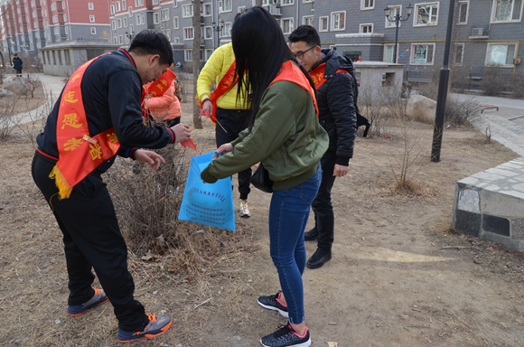 在金宇文苑社区服务中心工作人员的带领下,同学们分工明确,团结协作,手持各类卫生工具,对小区内卫生较差的死角进行集中清洁。随后,同学们又对小区里的电线杆、垃圾箱等地方的小广告进行了彻底的铲除。在寒冷的天气中,我院学生表现出极大的热情与责任感,整个志愿服务氛围轻松愉快,得到了社区领导的一致好评,为社区的居民创造了干净整洁、舒适温馨的家园。