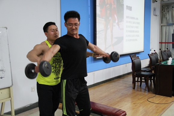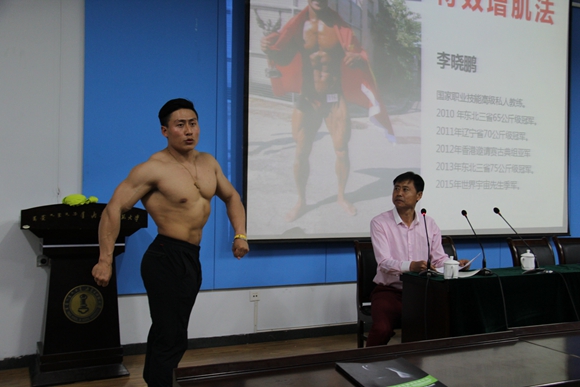 本网讯(文/图 姚辉)为提高在校学生的健身、健美意识,活跃校园文化,由我院团总支、体育科学研究所主办的“践行社会主义核心价值观”之体育专业系列讲座——运动员的增肌方法于4月21日下午3:00,在体育馆报告厅开展,出席开幕式的领导有体育学院党总支书记铁木尔、体育学院副院长包呼格吉乐图、康比特亚洲运动健康管理学院院长冯淼、国家首席运动营养师魏冰、康比特亚洲运动健康管理学院金牌讲师李晓鹏、康比特亚洲运动健康管理学院市场部经理张泽峰。参加本次讲座的还有我院团总支书记敖永胜、我院部分学生以及其他学院爱好健身健美的同学们。本次讲座由我院体育科学研究所所长张磊(大)主持。