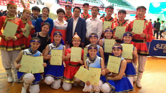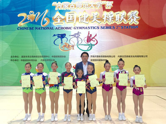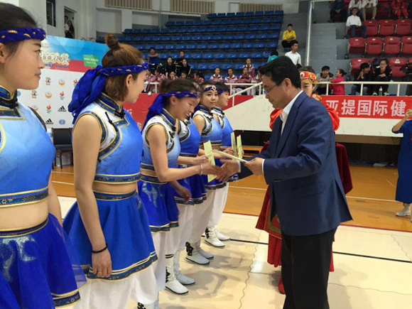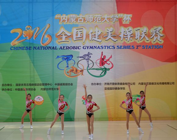 本网讯(文/图 体育学院学生会 姚辉、侯俊林) 由国家体育总局体操运动管理中心、中国健美操协会主办,中国通信体育协会、内蒙古师范大学承办,济南开普体育健身有限公司、内蒙古艺森缘文化传播有限公司、亚提国际健身学院、中国通信体协山东健美操培训基地协办的2016年“内蒙古师范大学”杯全国健美操联赛(呼和浩特站)火热开赛,我校党委委员、副校长张海峰出席部分项目颁奖仪式。