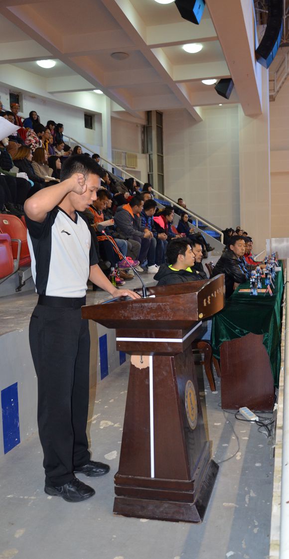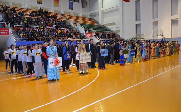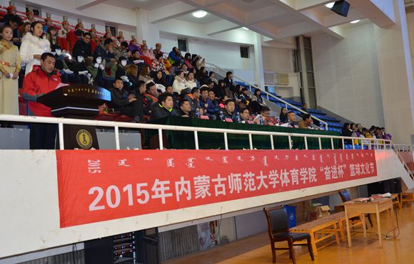 本网讯(文/图 体育学院学生会 姚辉 侯俊林)由共青团完美游戏网(中国)安卓通用版,委员会主办、体育学院学生会承办的2015年完美游戏网(中国)安卓通用版,“奋进杯”篮球文化节于2015年11月23日晚7点30在我院篮球馆隆重开幕。我校学生处处长单和盛、团委青年工作部负责人董欣、内蒙古金笛篮球裁判俱乐部会长白波、我院党政领导铁木尔、董建平、韩武出席开幕式,出席开幕式的还有我院学工办主任孟亚彪、本次比赛裁判长刘晨曦。我院800余名师生参加开幕式。开幕式由体育学院团总支书记敖永胜主持。