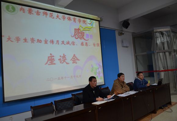 本网讯(文/图 体育学院学生会 姚辉)11月19日,我院在多媒体报告厅召开“大学生资助宣传月及诚信、感恩、自强”座谈会,学院党总支副书记韩武、学工办主任孟亚彪、团总支书记敖永胜出席会议,参加会议的还有来自各班级337名贫困生。会议由学工办主任孟亚彪主持。