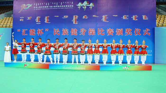 本网讯(文/修增楠;图/周雅宁、刘楠)由国家民族事务委员会、国家体育总局主办,内蒙古自治区人民政府承办的中华人民共和国第十届少数民族传统体育运动会8月17日在鄂尔多斯市落下帷幕。我校运动员代表内蒙古自治区参加了民族健身操比赛。经过规定动作、自选动作两个阶段比赛,最终以18.53分的成绩获得二等奖,为自治区争得了荣誉。