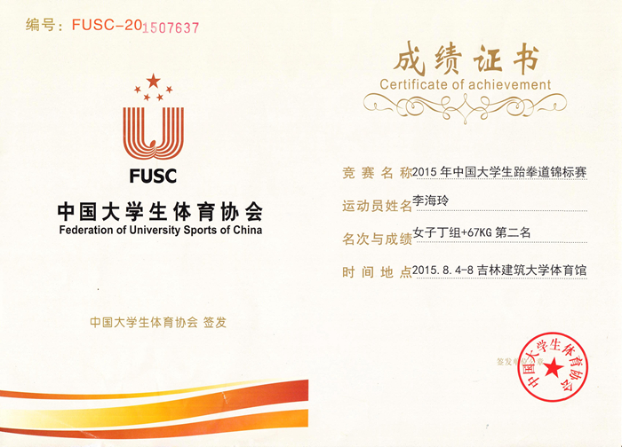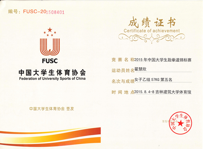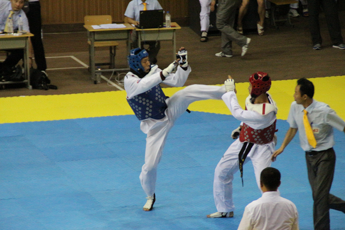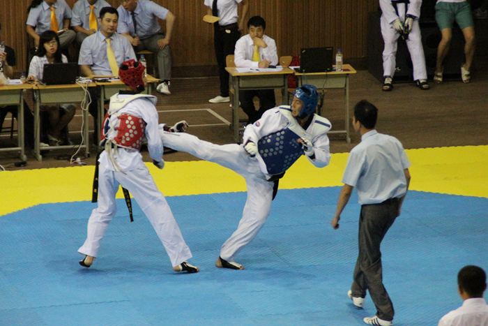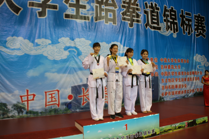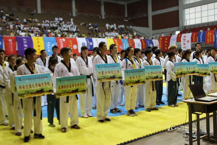 本网讯(文/图 张建强)由中国大学生体育协会主办,吉林建筑大学承办,中国大学生体育协会跆拳道分会、东北地区学生培训基地、吉林省跆拳道协会、长春市瑞祥麒体育文化推广有限公司协办的2015年中国大学生跆拳道锦标赛于8月4日至8月9日在吉林建筑大学举行,来自南开大学、南昌大学、南京体育学院、兰州理工大学、集美大学、河南师范大学、河南农业大学、深圳大学、上海体育学院、厦门大学、新疆大学、延边大学、中南大学、中国政法大学、中国地质大学、广州大学、北京交通大学、成都体院、山东体院、湖南大学、安徽大学、天津理工大学等130所高校的1300多名运动员参加此次比赛,比赛共分四个组别分别参加竞技个人、竞技团体、品势比赛。