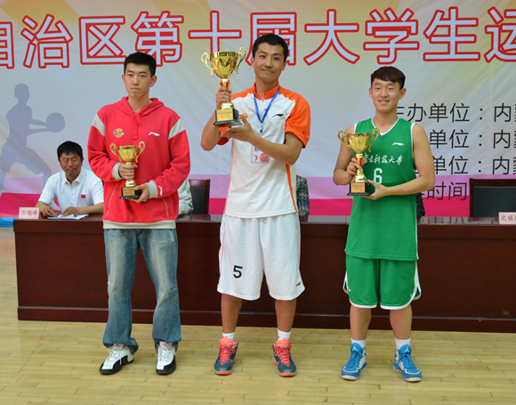 我校男子篮球队在决赛中以79比57战胜内蒙古科技大学获得冠军,在同时进行的女子篮球决赛中,我校女子篮球队惜败内蒙古科技大学获得亚军。张磊、张慧升荣获“优秀教练员”;敖永胜荣获“优秀裁判员”;孙月敏、郭欣荣获“优秀运动员”。