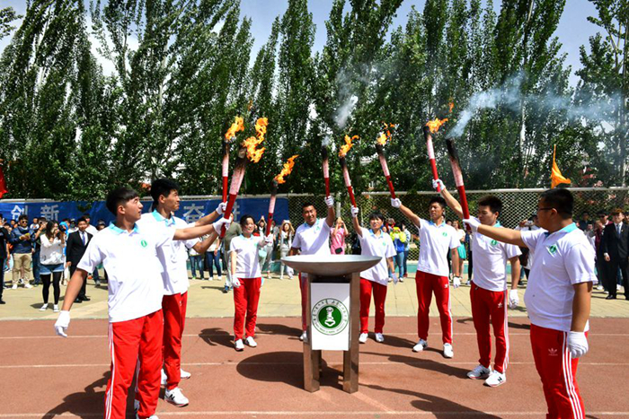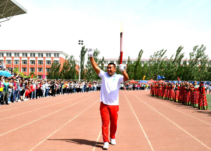 本网讯(文/修增楠;图/宣传部新闻中心 边辑 董恩源 白东岳)6月10日,我校首届奥林匹克运动会暨53届田径运动会在盛乐校区体育场隆重开幕,在开幕式最后一项火炬传递仪式上,我院2014级体育硕士斯日吉嘎瓦担任主火炬手。