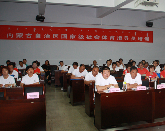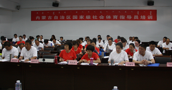 本网讯(文/图 李凤新)7月8日上午,内蒙古自治区第六期国家级社会体育指导员培训班开班仪式在我院报告厅隆重举行,自治区体育局群体处处长刘贵生,我院党总支书记铁木尔,院长董建平出席开班仪式。我院党总支书记铁木尔致欢迎辞,自治区体育局群体处处长刘贵生代表自治区体育局作重要讲话。本期培训班自7月7日开始至7月14日结束,培训内容分为理论知识培训和技能指导培训两大部分。全区的各个盟市均选派了本地区优秀的社会体育指导员共计100人参加本次培训,本次培训对我区全民健身事业的发展将具有积极的推动作用。