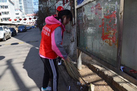 本网讯(文/图 体育学院学生会 姚辉)为了纪念雷锋同志,弘扬雷锋精神,我院团总支、学工办在校团委的带领下于3月5日组织学生会成员及各班班干部开展了以“学习雷锋”为主题的活动,他们来到大学西路师大社区服务中心,在社区领导的带领下,在附近社区进行擦玻璃、打扫卫生、清理公告牌等一系列爱心活动。为社区的居民创造了干净整洁、舒适温馨的家园。