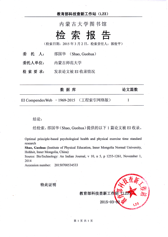 本网讯(文/邵国华;图/修增楠)4月2日下午,我院在体育馆会议室召开专门会议对我院邵国华老师被EI检索期刊收录的发表在《Bio Technology: An Indian Journal》学术论文《Optimal principle-based psychological health and physical exercise time standard research(中文名:基于最优原则的心理健康及体育锻炼时间标准研究》给予专项奖励,学院党政领导铁木尔、董建平、韩武、包呼格吉乐图及全体教职工出席会议。