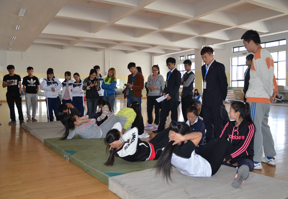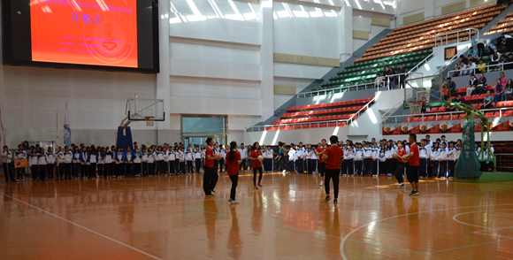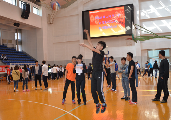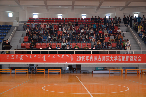 本网讯(文/图体育学院学生会 姚辉、侯俊林)由共青团内蒙古师范大学委员会主办,体育学院团总支承办的2015年内蒙古师范大学吉尼斯运动会于4月25日早9点30分在赛罕校区新体育馆拉开帷幕。计算机与信息工程学院党总支书记辛智俊、党总支副书记朱丽波;化学与环境科学学院党总支副书记王凤歧;国际交流学院党总支副书记赵春雷;教育科学学院党总支副书记张克玉;物理与电子信息学院党总支副书记何小龙;体育学院党总支书记铁木尔出席开幕式,参加开幕式的还有各学院团总支、学工办老师和赛罕校区八个代表队的部分同学。开幕式由体育学院团总支书记敖永胜主持。
