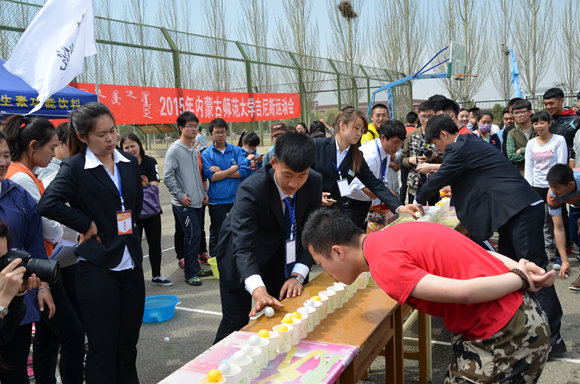 本网讯(文/图体育学院学生会 姚辉、侯俊林)由共青团内蒙古师范大学委员会主办,体育学院团总支承办的内蒙古师范大学第二届吉尼斯运动会经过2天的激烈对抗于4月26日下午17点在盛乐校区篮球场胜利闭幕。校党委副书记格日乐图、校团委书记斯钦、蒙古学学院党总支副书记包铁龙、教育科学学院党总支副书记张克玉、文学院党总支副书记王志强出席了闭幕式。