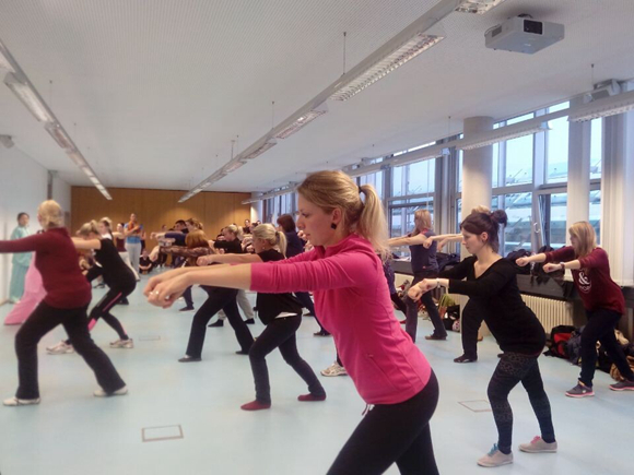 在德国新勃兰登堡大学为期9天的教学中,技术教学12场,有600人次参加了本次培训。在德国,健身气功已经和医疗保险合作,在新勃兰登堡大学取得健身气功合格证的专业教师教授健身气功,医疗保险为学习健身气功者报销培训费,以减轻医疗费用。早在4年前健身气功就已经进入新勃兰登堡大学,为期3年的健身气功职业教育的20名学员已经毕业,他们大部分在社会上教授健身气功作为自己的第二职业。据了解,健康管理专业和北京体育大学养生教研室合作,打算招收健身气功研究生。目前,健身气功已经成为健康管理专业学生的正式课程。本次在德国教学,主要完成了三个类型的健身气功教学。一是面向社会招生,有40名健身气功爱好者参加了为期2天的五禽戏初级班的培训;二是有11位教练员参加了太极养生杖提高班的培训;三是有107位健康管理专业的学生参加了五禽戏的培训,最后有40名学生经过严格考核,获得了本门课程的合格成绩。