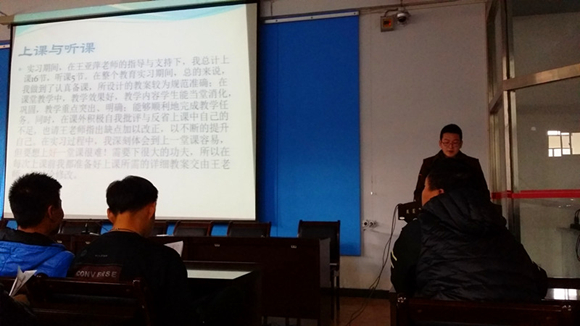 此次教育实习学校共有3所,分别是内蒙古师范大学附属中学、呼和浩特市土默特中学、呼和浩特市第三十四中学。贾佳代表校内外实习管理教师对学生校内外实习情况做出总结;运动训练专业姚一帆,韩鹏等五名实习生代表在报告会上进行了总结发言,他们从课堂教学常规(理论与实践)、课间操、运动队训练,以及各中学学生体能测试等方面进行了生动的总结和阐述,并提出了自己的意见。总结涉及在教学中如何利用教法手段、怎样调动学生积极性、以及多用鼓励的语言激励学生加强学习和锻炼等方面内容,并指出了教育实习体育教学中存在的问题和解决方法,以及在体能测试中学生的体质问题。为2012级运动训练学生今后走向教育实习岗位进行锻炼实习提供了非常好的借鉴思路和方法,为学院今后如何完善教育实习提供了策略性建议。