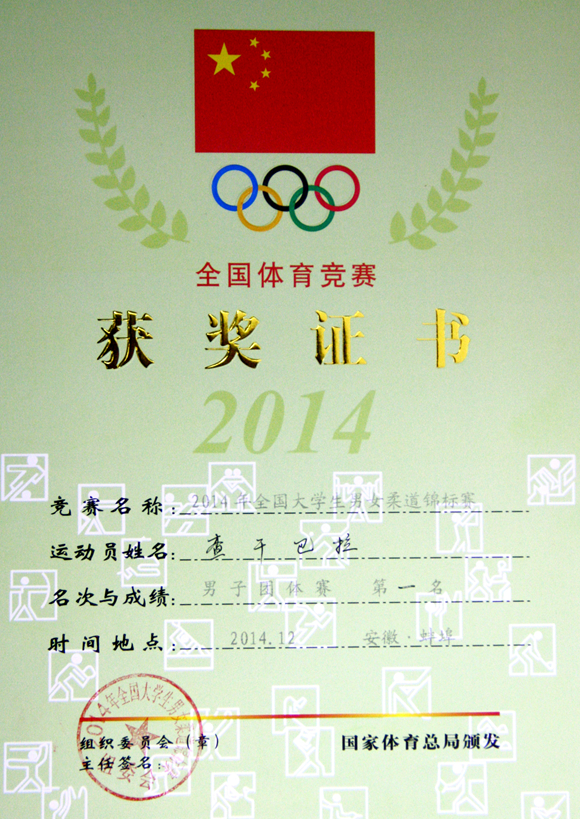 查干巴拉获得男子团体冠军证书