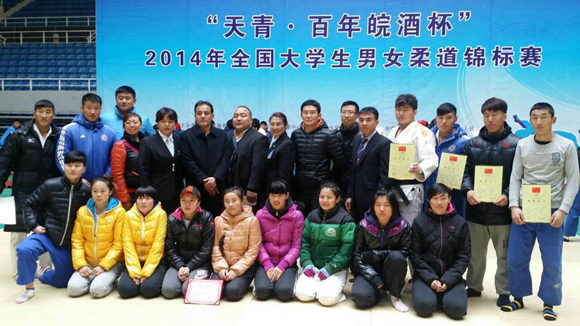 本网讯(文/图 袁晋)“天青•百年皖酒杯”2014年全国大学生男女柔道锦标赛于12月1日—6日在安徽蚌埠•龙湖体育馆正式开赛,来自全国27支高校的400余名运动员参加了比赛。本次比赛采用了中国柔道协会审定的最新竞赛规则,个人比赛采用单败淘汰、四分之一复活赛制,比赛时间女子4分钟、男子为5分钟。