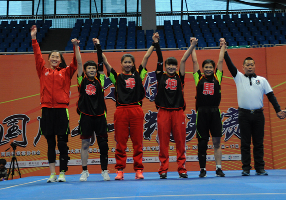 本网讯(文/图 张建强)由全国体育院校竞赛协作会、全国脚斗士大赛推广委员会主办,武汉体育学院承办的第六届全国脚斗士精英赛于12月17日晚在武汉体育学院落下帷幕,本届精英赛共有全国十余所体育院校近200名运动员参加。其中,内蒙古师范大学和集美大学作为新晋成员,首次参加本届脚斗士精英赛。本届比赛共进行男子人赛五个级别、女子个人赛五个级别、男子团体赛、女子团体赛共12块金牌的争夺。男、女个人赛分为轻量级、中量级、次重量级、重量级和超重量级五个级别进行比赛。团体赛将采用全新的积分制竞赛规则,即每局对抗比分不清零,并将全场得分进行累计。男子团体总体重不超过385公斤,女子团体不超过310公斤,本次比赛采用混合制的竞赛办法(先分组循环后交叉),决出团体前八名。第三名、第四名并列为第三名,第五名至第八名并列为第五名。