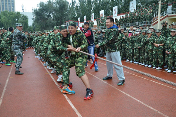 本网讯(文/图 体育学院学生会 姚辉)内蒙古师范大学2014年度军事技能训练之赛罕校区拔河比赛于9月16日下午在我校田径场举行。我院代表队在决赛中以二比一战胜物理与电子信息学院获得冠军,计算机与信息工程学院、生命科学与技术学院、国际现代设计艺术学院、化学与环境科学学院、国际交流学院、音乐学院分获3—8名。