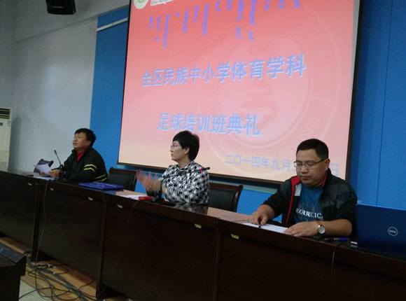 本网讯(文/图 白银桩)为了提高全区民族中小学体育教师足球教学水平,促进足球专任教师专业化发展,提高全区民族中小学开展足球课活动的意识、组织策划与指导实施能力,由自治区民族事务委员会、自治区教育厅主办;我院承办的2014年全区民族中小学体育学科(足球)专任教师培训班于9月11日至10月17日在我院举行,本次培训分为三期,共来自全区民族中小学体育教师150名学员参加培训。