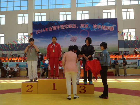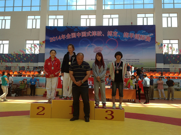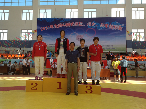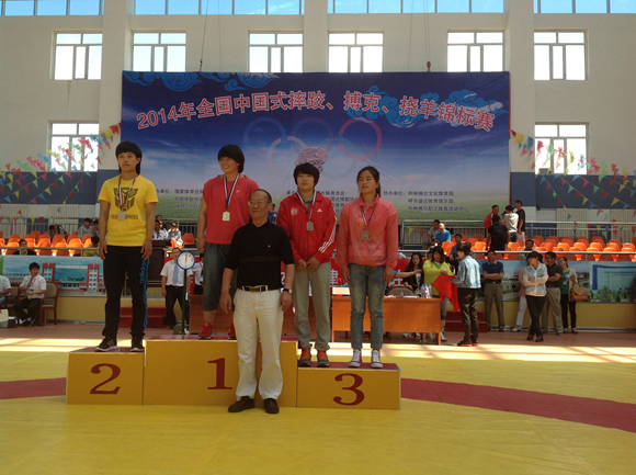 刘亚利获得中国式摔跤女子60kg铜牌(右二)