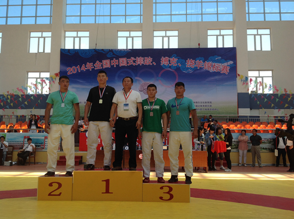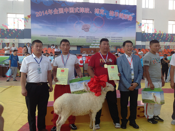 本网讯(文/图 袁晋)由国家体育总局举重摔跤柔道运动管理中心、中国摔跤协会主办,内蒙古体育总会、内蒙古中国式摔跤协会、呼和浩特市体育局和和林格尔县政府承办的2014年全国中国式摔跤、搏克、挠羊锦标赛于6月7日—10日在和林格尔县文体馆落幕。