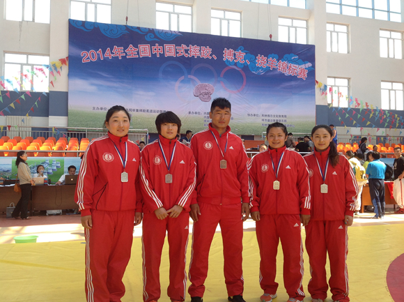 经过四天的激烈角逐,我校代表队共获得2块金牌3块银牌和2块铜牌,同时获得“体育道德风尚奖”。中国式摔跤:1金2银2铜(刘思雨,芒来其其格,苏雅拉其其格,刘亚利,青格勒巴雅)搏克:1银(乌云毕力格)挠羊:1金(刘思雨)。