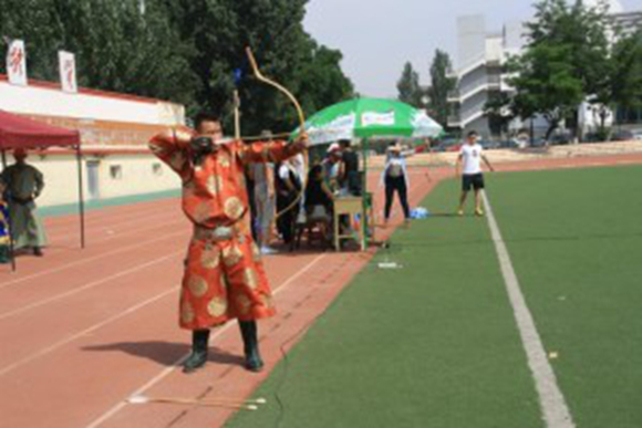 本网讯(文/图 孟克满都胡)6月14日,由内蒙古师范大学非物质文化遗产保护与研究中心、内蒙古民俗文化研究基地、内蒙古射箭协会主办,我院承办的内蒙古自治区第二届大学生“哈日靶”比赛在西操场举行。来自内蒙古大学、内蒙古农业大学、内蒙古医科大学、内蒙古财经大学、内蒙古师范大学青年政治学院、呼和浩特民族学院、内蒙古师范大学等代表队参赛。我院代表学校参加比赛。在团体比赛中呼和浩特民族学院获第一名,内蒙古大学获得第二名,内蒙古医科大学获得第三名。比赛还特意奖励射中央眼的登金巴特等十名选手,敬哈达诵祝词。