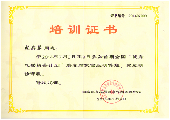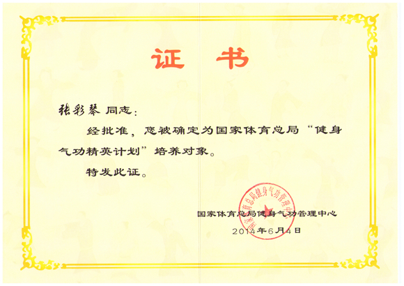 本网讯(文/图 张彩琴)为进一步推动健身气功事业又好又快可持续发展,更好地完成满足群众气功健身需要和维护社会稳定服务的双重使命,针对当前健身气功专家队伍出现的人才数量总体不足、老龄化倾向严重、复合型人才不多、高层次创新性人才匮乏等问题,国家体育总局健身气功管理中心于2014年专门设立了“健身气功精英计划”,拟用3年时间,投资500万元对遴选的约30名55岁(含)以下的培养对象进行重点培养,希冀造就一批政治素质好、业务能力精、创新意识强、工作作风实的中青年专家队伍,使其成为健身气功教学科研的骨干,成为传播健身气功养生文化的使者,成为服务健身气功事业国内外发展的生力军。我院教师张彩琴入选为“健身气功精英计划”培养对象。