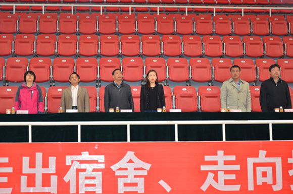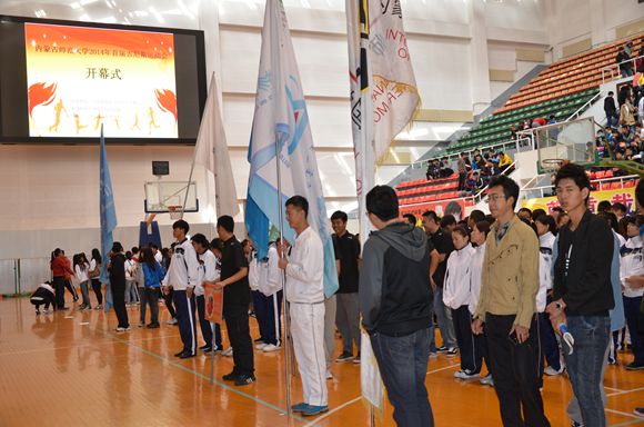 本网讯(文/图体育学院学生会 孟祥华、田贵金)由共青团内蒙古师范大学委员会主办,体育学院团总支承办的2014年内蒙古师范大学吉尼斯运动会开幕式于5月10日早9点在赛罕校区体育馆拉开帷幕。共青团内蒙古师范大学委员会副书记许琳、网络技术学院党总支副书记乾达门、化学与环境科学学院党总支副书记王凤岐、国际交流学院党总支副书记赵春雷、计算机与信息工程学院党总支副书记朱丽波及体育学院党总支副书记韩武出席开幕式,参加开幕式的还有各学院团总支、学工办老师和赛罕校区八个代表队的部分同学。开幕式由体育学院团总支书记敖永胜主持,学院党总支副书记韩武致开幕辞。
