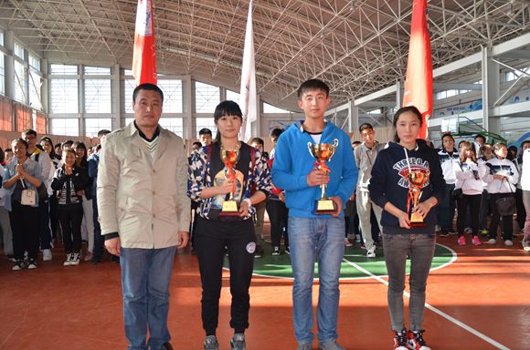 本网讯(文/图 体育学院学生会 孟祥华、田贵金)由共青团内蒙古师范大学委员会主办,体育学院团总支承办的2014年内蒙古师范大学吉尼斯运动会经过2天的激烈对抗于5月11日晚17点在盛乐校区体育馆顺利闭幕。