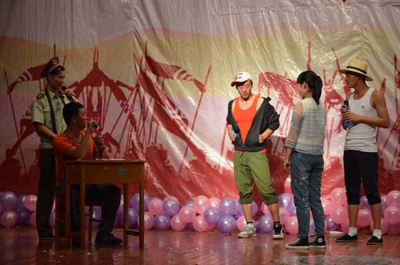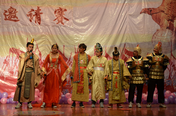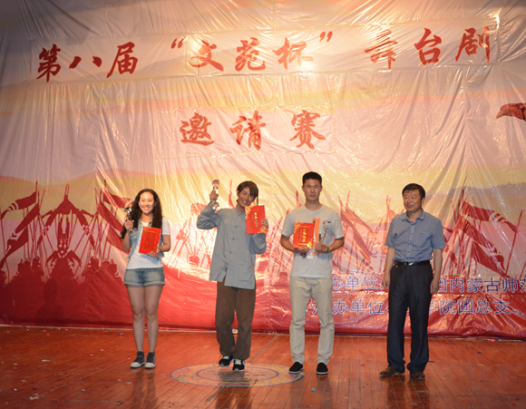 本网讯(文/图 体育学院学生会孟祥华、田贵金)我院《乡村爱情畅想曲》剧组及《项羽外传》剧组在团总支的指导下,经过了半个月的紧张排练,于5月29日晚19:30分在盛乐校区科技楼报告厅参加了内蒙古师范大学第八届“文苑杯”舞台剧邀请赛。两个剧组的演员们以饱满的热情、丰富的演技赢得了老师、同学们的认可和褒奖。最终,《乡村爱情畅想曲》剧组获得本届舞台剧邀请赛的季军,《项羽外传》剧组的表演获得了优秀奖。