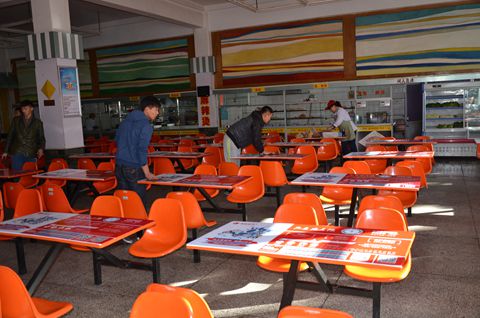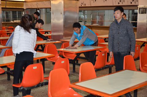 本网讯(文/图 体育学院学生会 孟祥华)为了纪念雷锋同志,弘扬雷锋精神,我院团总支、学工办于3月4日组织学生会成员开展以“学习雷锋”为主题的活动,他们来到我校餐饮部(食堂),开展了清扫垃圾、擦桌椅等一系列义务劳动,给予了每名同学一个舒适温馨的饮食环境。