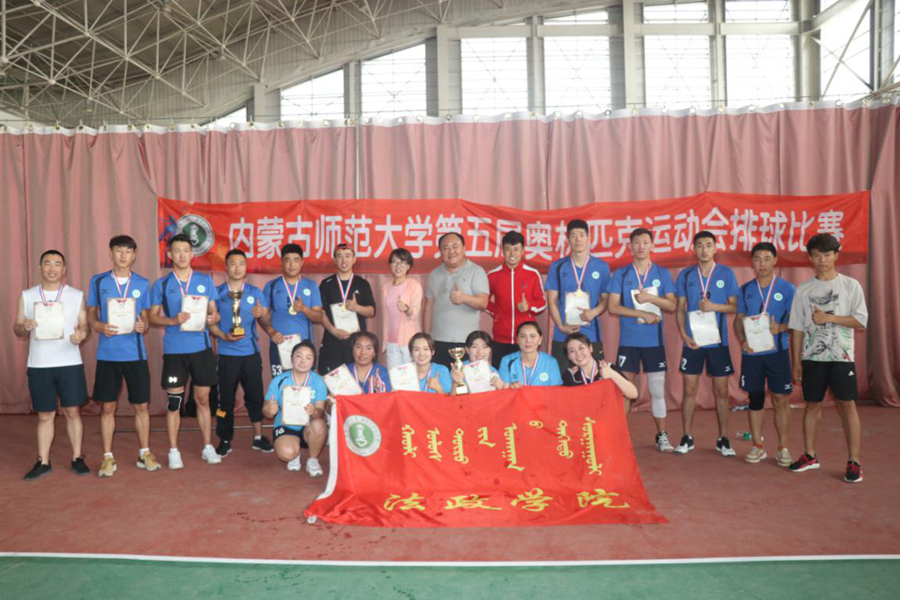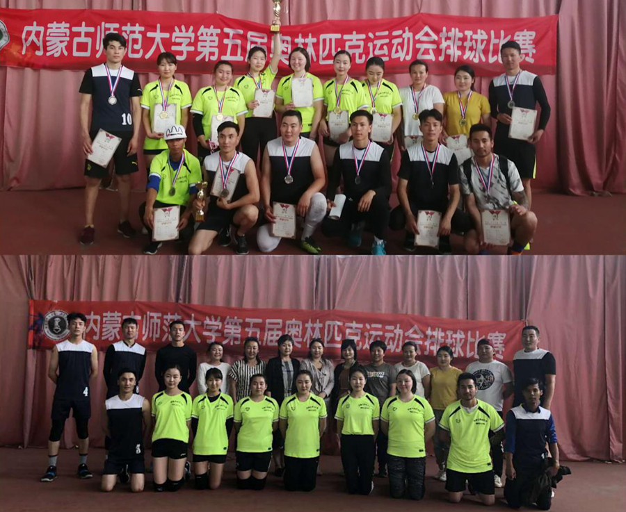 本网讯 5月25日下午,内蒙古师范大学第五届奥林匹克运动会排球比赛在我校盛乐校区圆满落幕。本届比赛共有来自我校各院系15支男队、16支女队的300多名运动员参加。在经历了第一阶段小组赛,第二阶段交叉淘汰激烈的角逐后,最终男子组获得前八名的代表队依次是法政学院、美术学院、国际交流学院、工艺美术学院、地理科学学院、数学科学学院、化学与环境科学学院和历史文化学院,女子组获得前八名的代表队为国际交流学院、法政学院、数学科学学院、地理科学学院、经济学院、教育学院、化学与环境学院和历史文化学院。