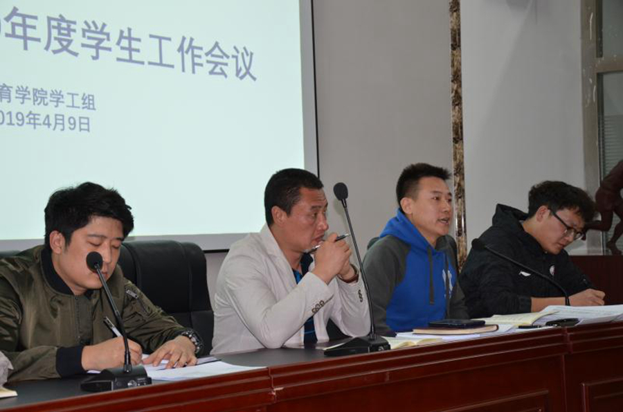 最后,学院党总支书记韩武讲话,他对我院近期学生工作给予了肯定,并结合学校第十一次党代会和学校本科教学工作会议精神,阐述了下一步体育学院学生工作需要做什么、怎么做,同时要求全体学生工作人员要牢记立德树人根本任务,坚持与教学工作相结合抓好学风建设,积极配合好我校今年的重点体育赛事工作,不断提升业务水平和专业能力,更好地为学生服务。